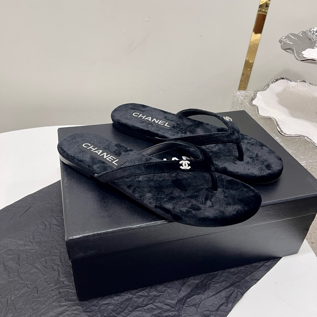 CHANEL thongs cotton & silk Flip-flops