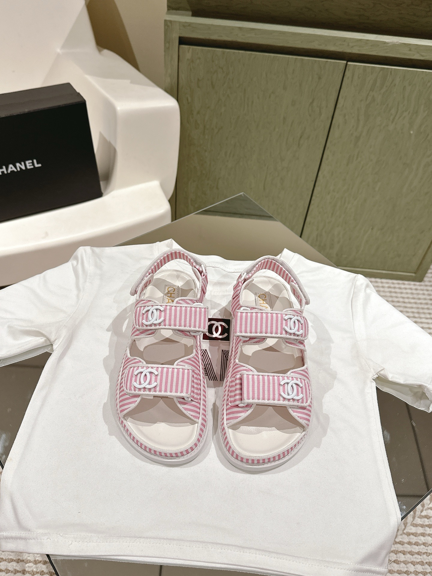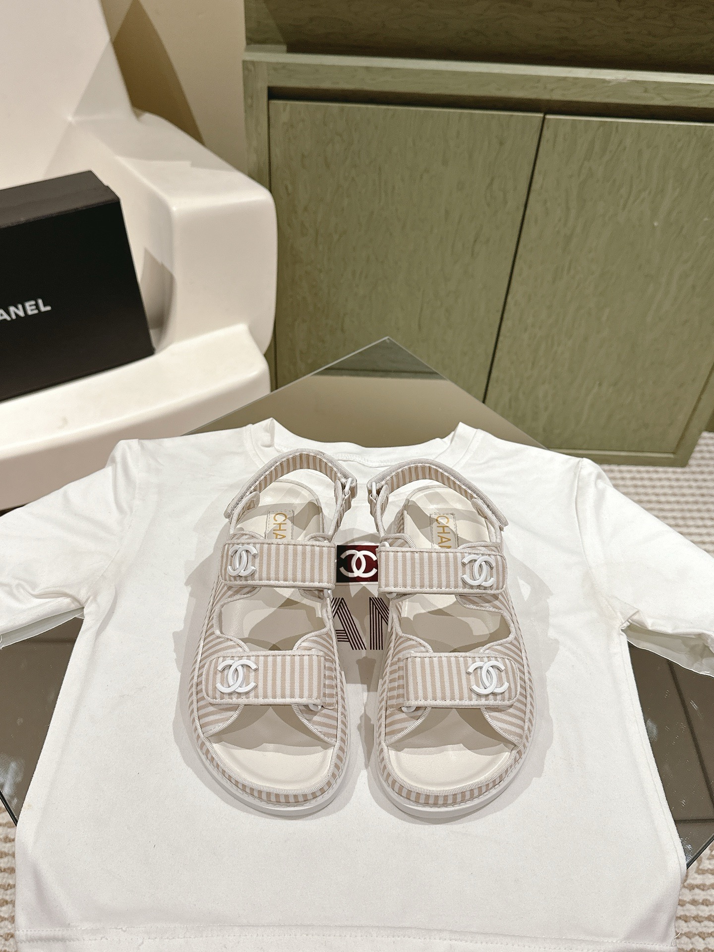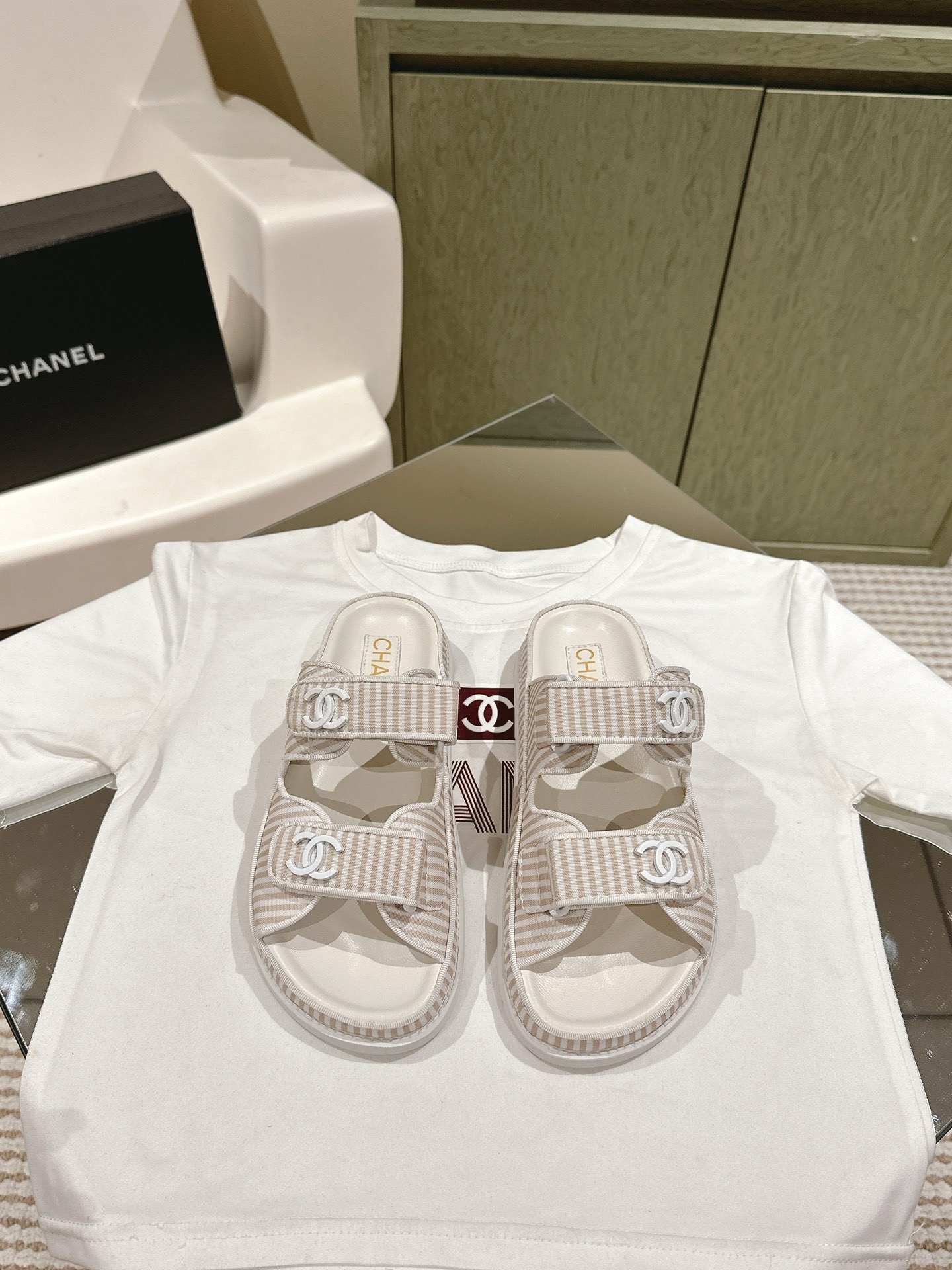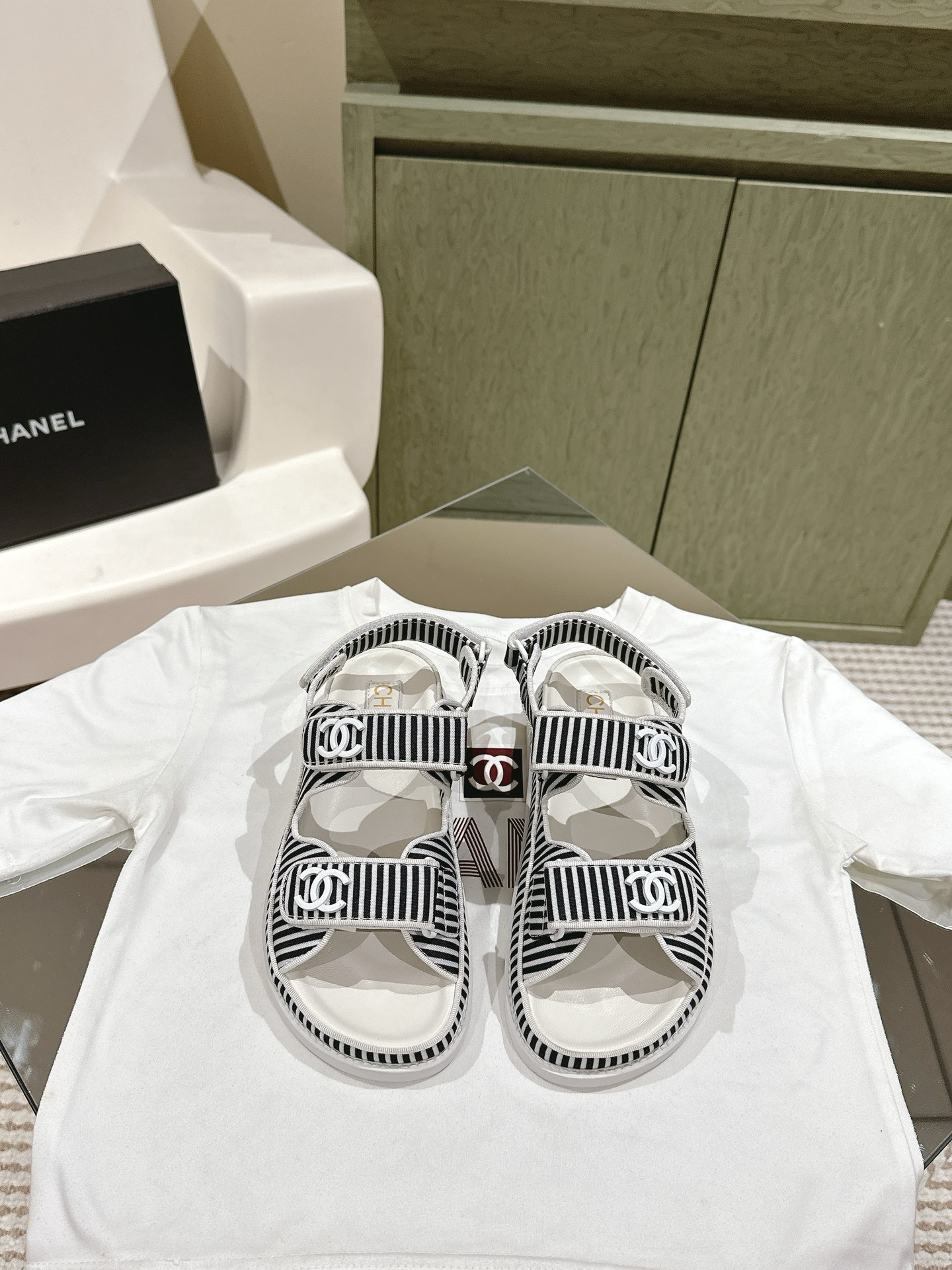 CHANEL stripe sandals