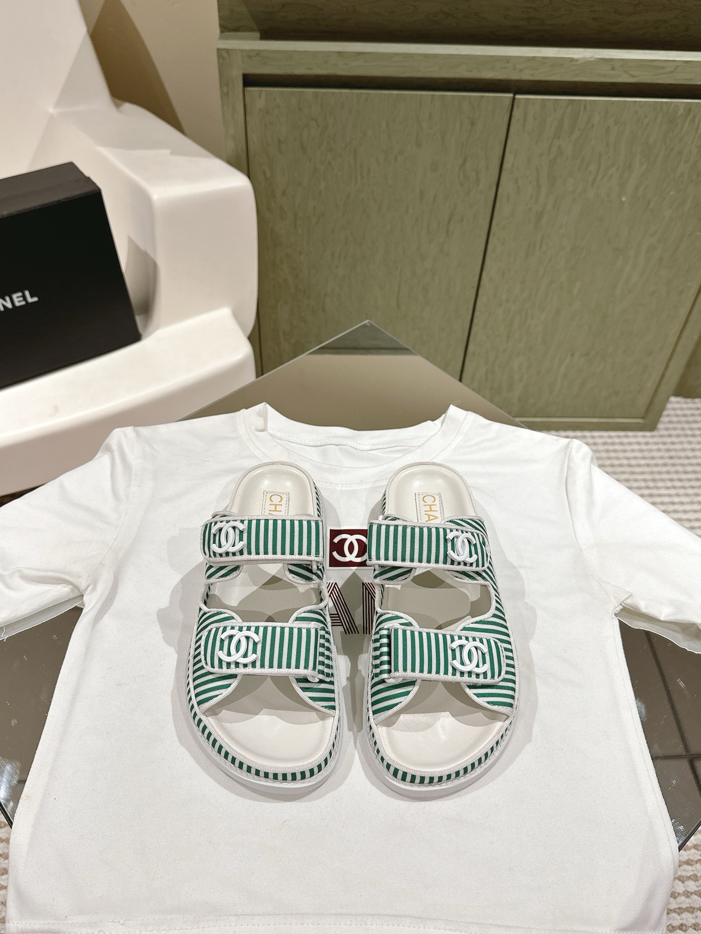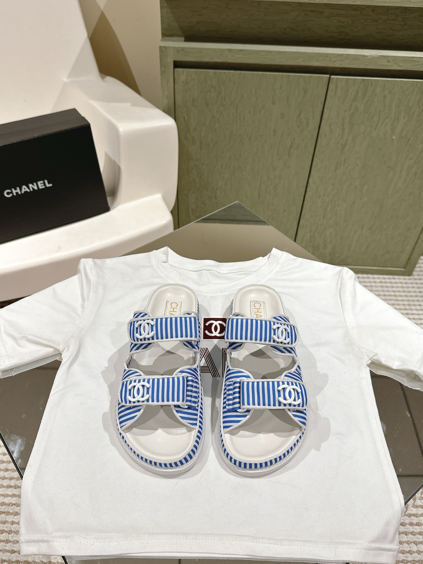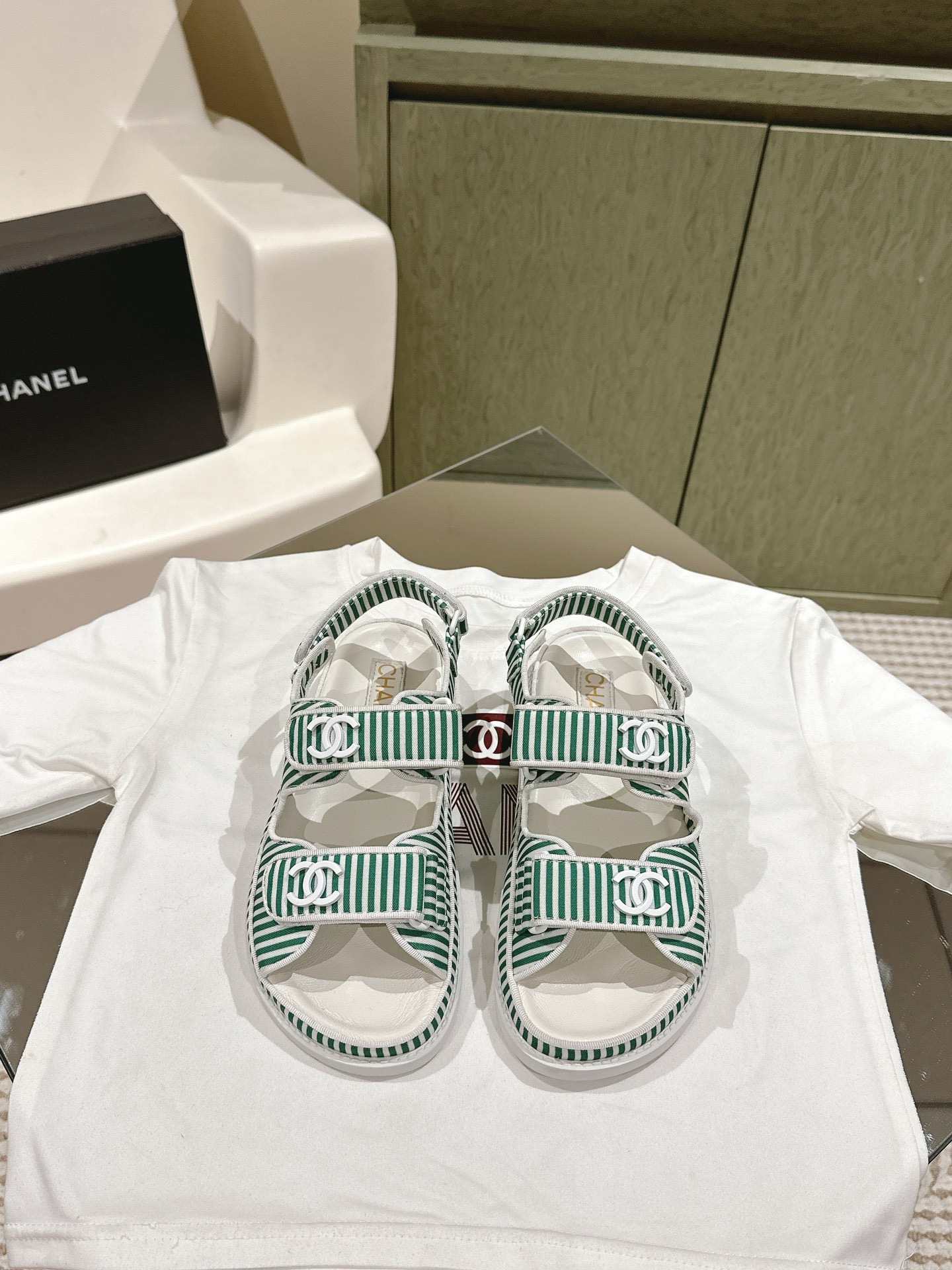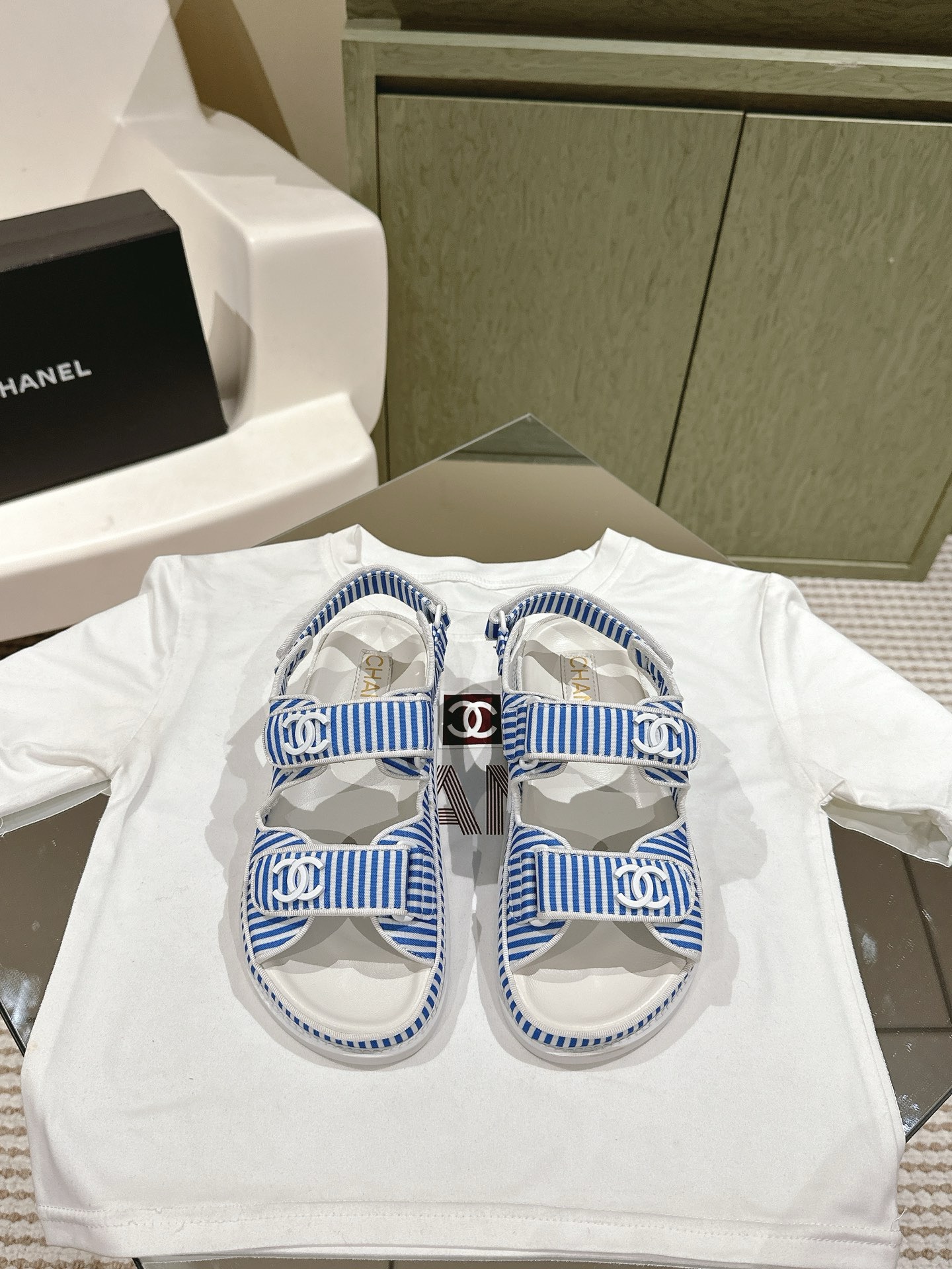 CHANEL stripe sandals