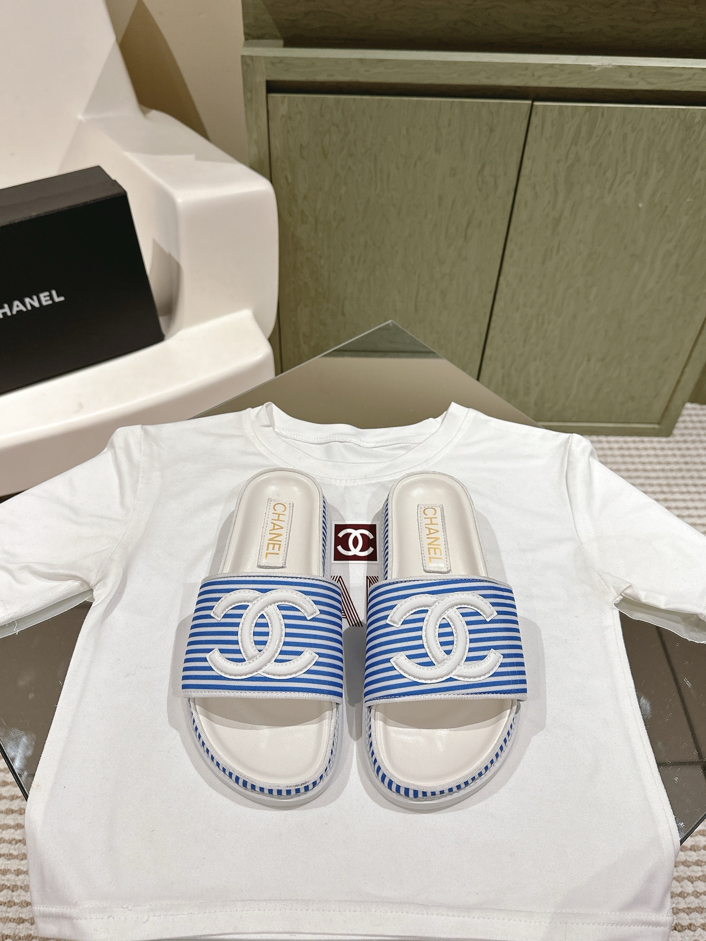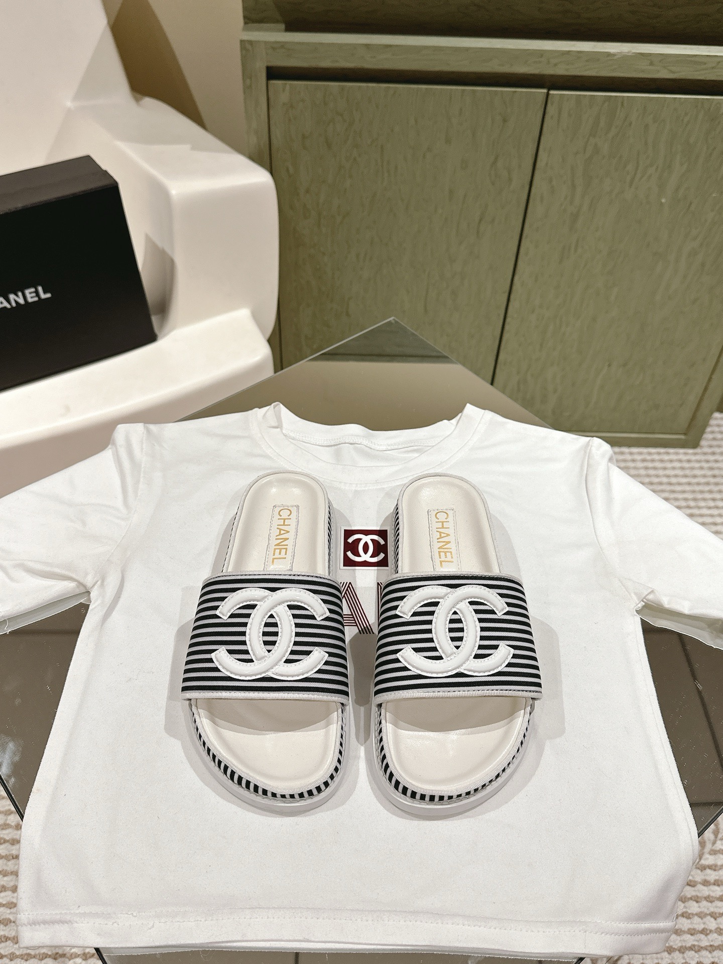 CHANEL stripe slipper